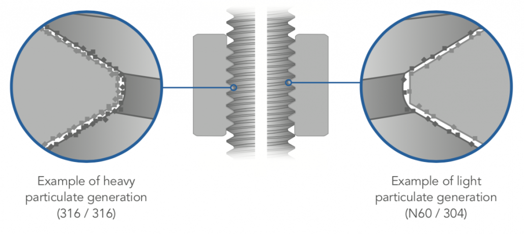 There is an issue throughout the industry of ‘galling’ on hygienic clamps. As the clamps are un-lubricated, dissimilar metals must be used to resist the adhesive wear from galling.