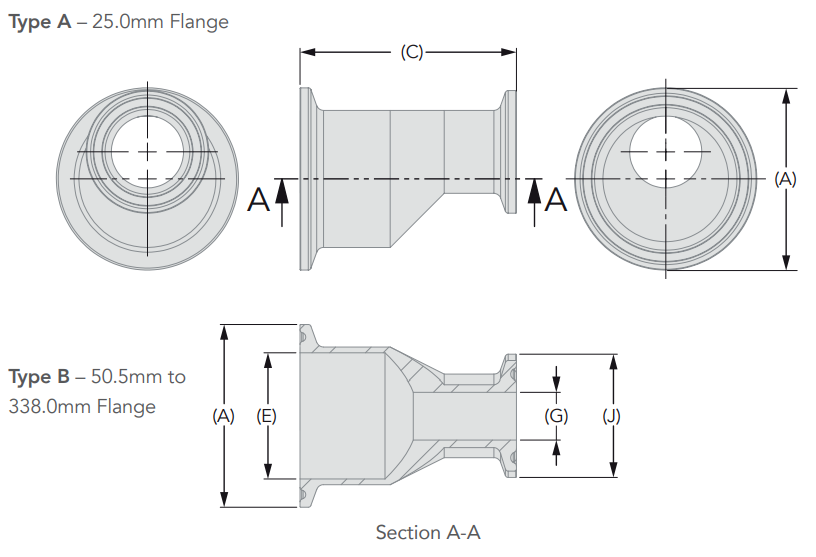 Eccentric Reducers Ferrule-ended, 2” Nominal 1, ¾” Nominal 2