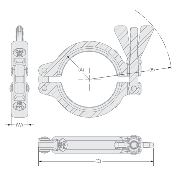 Pharmaceutical Tri-Clamp (4") | Type SH | Stainless Steel 316L | Wingnut