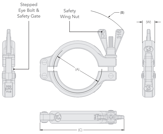 Pharmaceutical Tri-Clamp (4") | Type SH (Safety) | Stainless Steel 316L | Wingnut